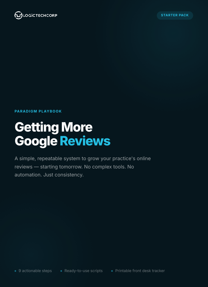 A simple, repeatable system your front desk can use to consistently generate new reviews, no complex tools and no guesswork. Download your dental practice playbook and learn five quick ways to improve your Google Reviews.